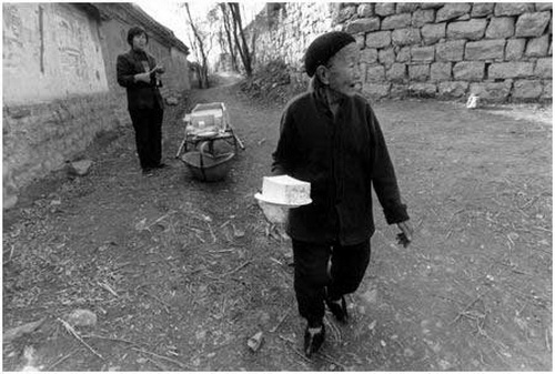 每到快過年,娘總是坐在家門口的石頭上,盼望兒回家過年。