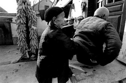 娘說:“小心點,你小心點嘛”。一生相扶持,還是老夫妻。