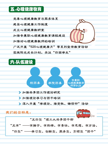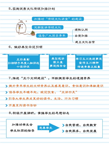 為了使大學(xué)生思想政治教育工作更好地貼近學(xué)生、吸引學(xué)生、凝聚學(xué)生,近日,校團委探索引導(dǎo)青年的新途徑,“圖說校團委2015年工作計劃要點”新鮮出爐了。這張萌圖以生動的語言和富有創(chuàng)意的形式,將我校2015年的共青團工作進行了一次有趣的“自我介紹”,這種極具親和力的宣傳方式深受同學(xué)們的喜愛和歡迎,漫畫獲贊“萌萌噠”。