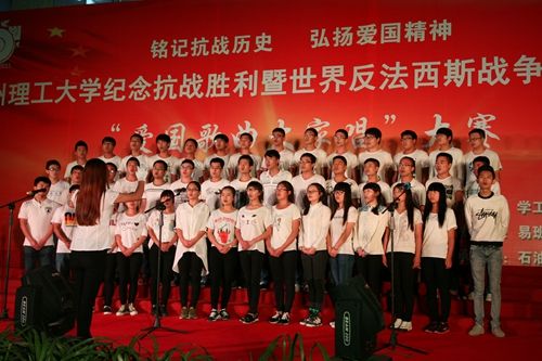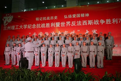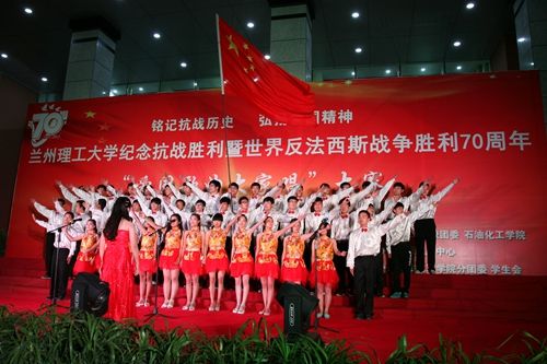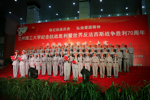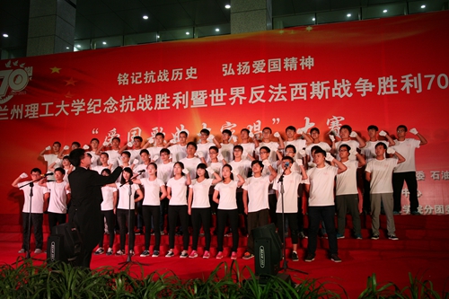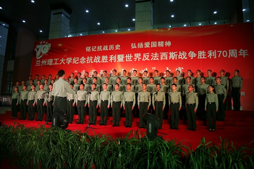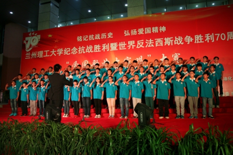 2015-09-219月17日晚7點,蘭州理工大學(xué)“銘記抗戰(zhàn)歷史,弘揚愛國精神”紀念抗戰(zhàn)勝利暨世界反法西斯戰(zhàn)爭勝利70周年“愛國歌曲大家唱”紀念活動在石化廣場隆重舉行。石化學(xué)院參賽班級分別獻上了《保衛(wèi)黃河》、《國家》、《強軍戰(zhàn)歌》、《團結(jié)就是力量》等一首首經(jīng)典愛國歌曲,同學(xué)們縱情高歌,唱出了英雄氣概,唱出了心中豪邁,唱出了對黨和國家的美好祝愿。