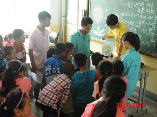 理學(xué)院實(shí)踐隊(duì)員們給孩子們展示物理實(shí)驗(yàn)