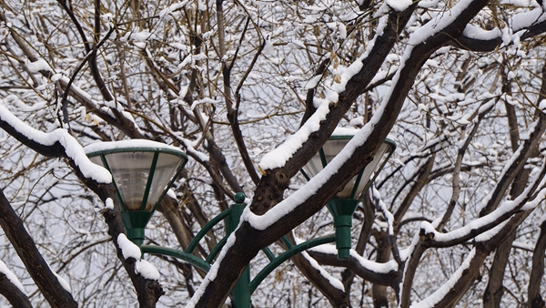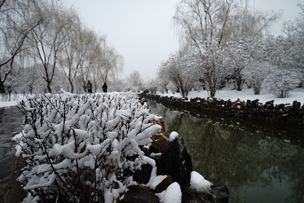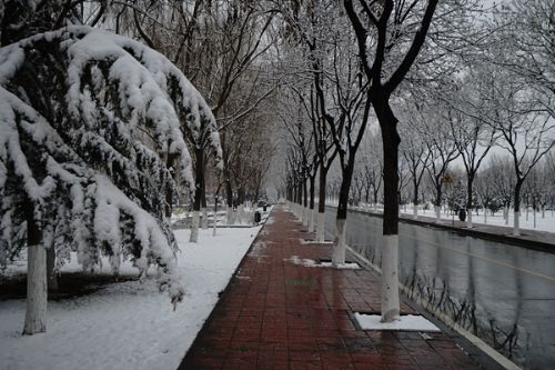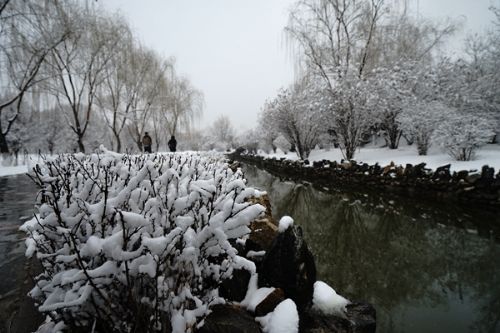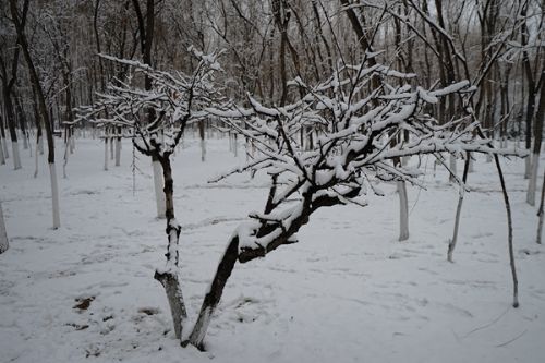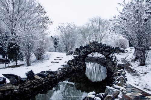 “白雪卻嫌春色晚,故穿庭樹作飛花。”初春時節,氣溫驟降,一夜寒風,雪降工大,只見玉樹瓊枝,銀裝素裹,春水待冰融。