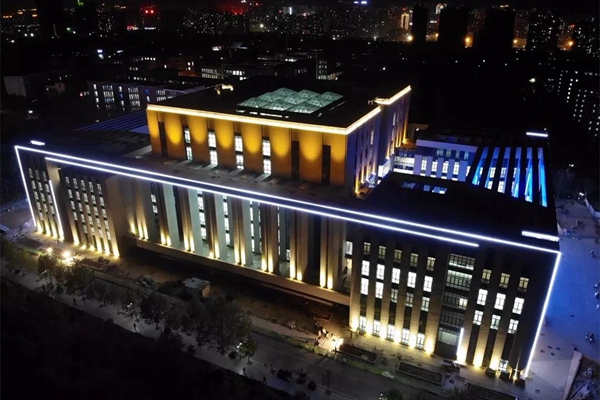 暮色之中,流云之下,蘭州理工大學(xué)西校區(qū)圖書館燈光交相輝映,將夜晚的西校區(qū)映襯得格外美麗?!白鴵硇吗^鑄內(nèi)秀,滿腹詩書氣自華”,新圖書館正用它博大的胸懷,召喚每一個(gè)愛智求真的工大學(xué)子,來這里激揚(yáng)文字,暢游書山。