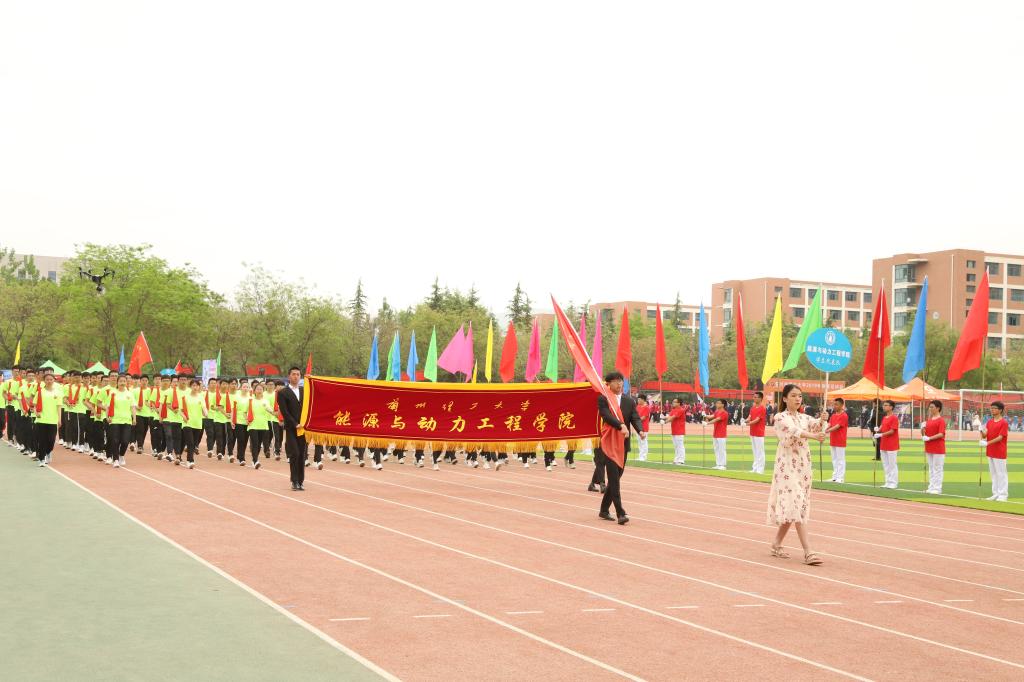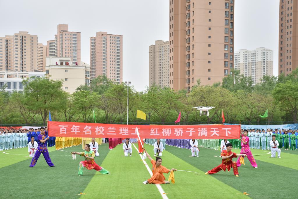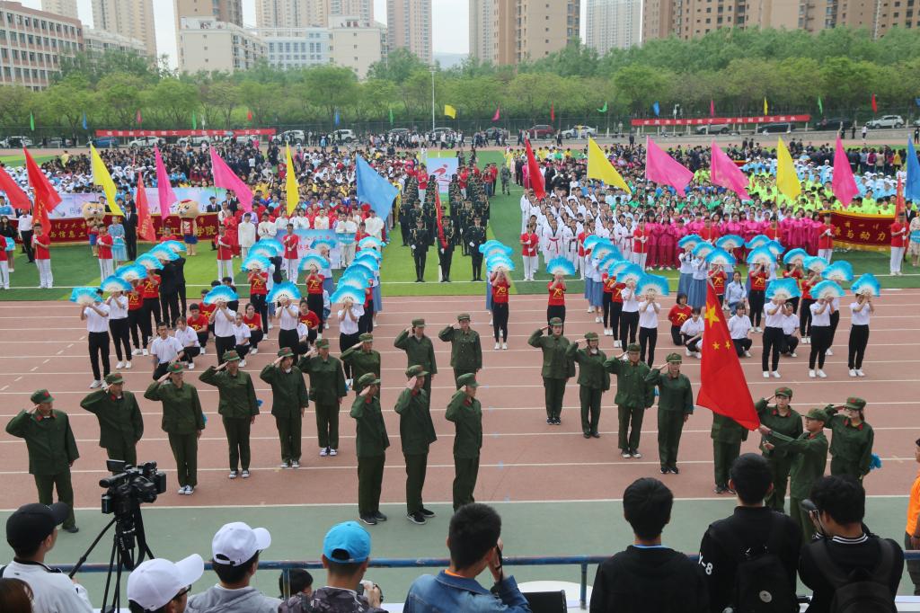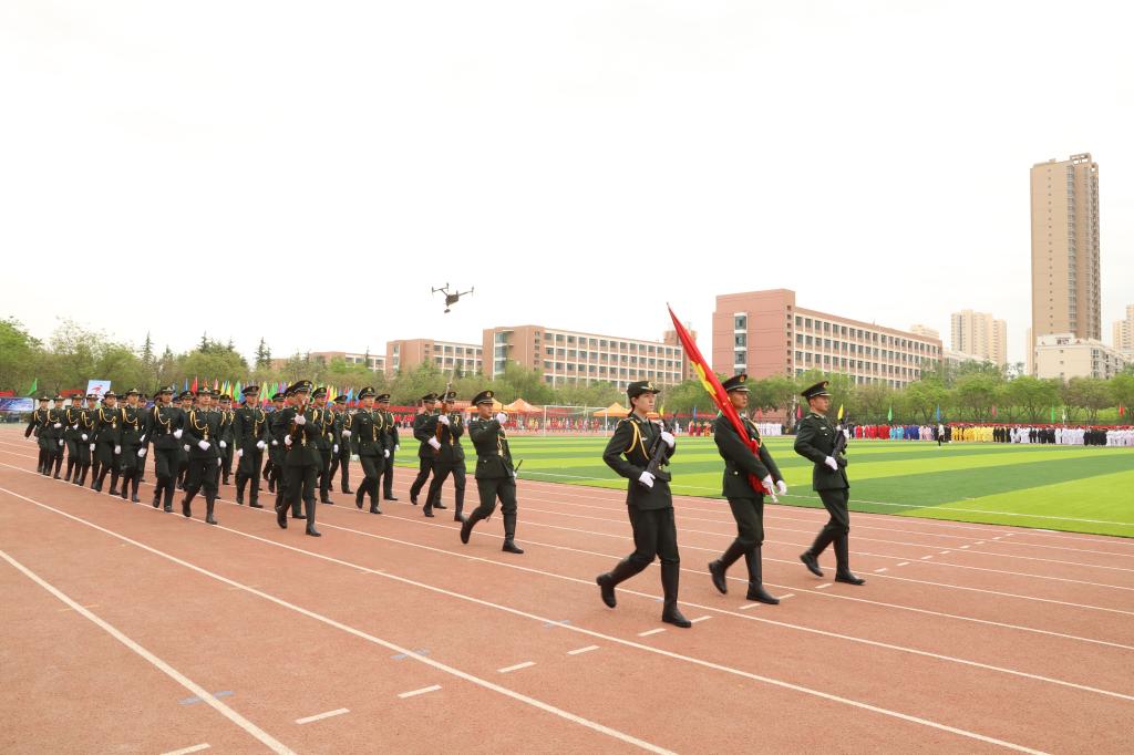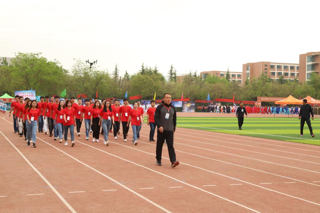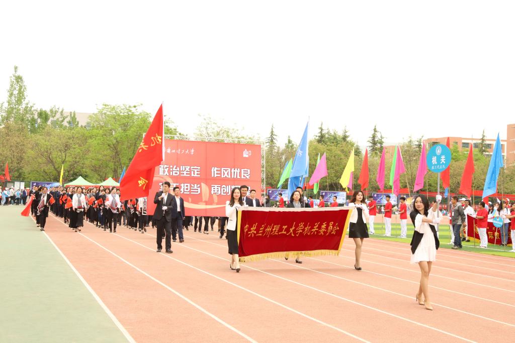 4月29日上午,蘭州理工大學2019年體育運動會在西校區田徑場隆重開幕。田徑場上彩旗招展,伴隨著激情高昂的運動員進行曲,國防生方陣護衛著莊嚴的國旗入場,運動會會徽、彩旗方隊,裁判員方隊,表演方隊,各學院學生方隊、教職工方隊,邁著整齊的步伐依次入場。各方隊各具特色的服裝、隊列、道具展現著各自的文化風貌和學科特色。