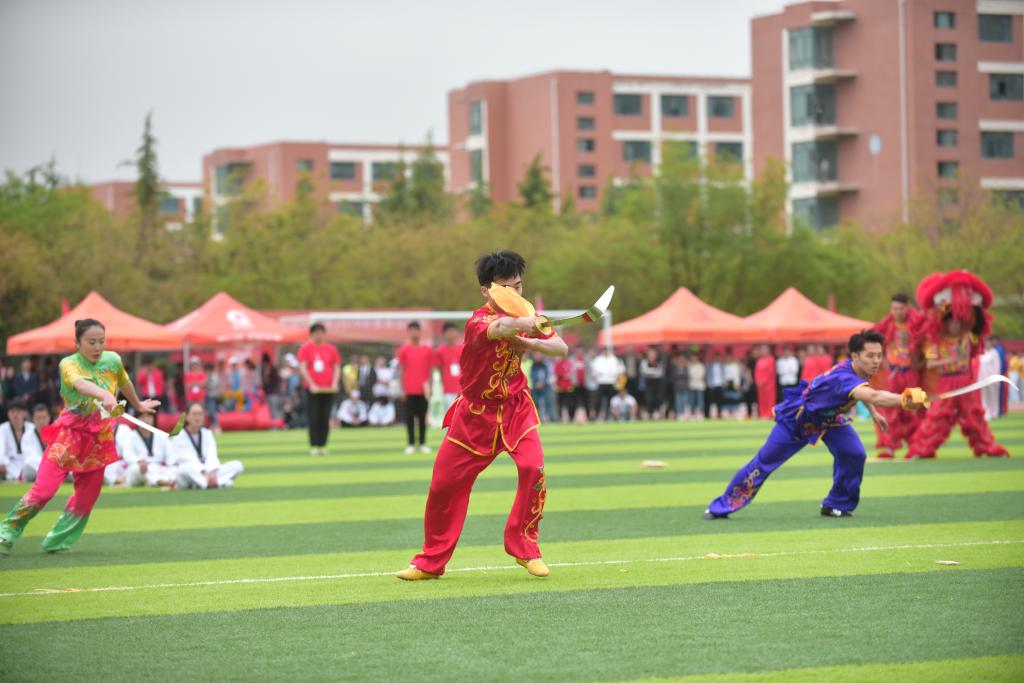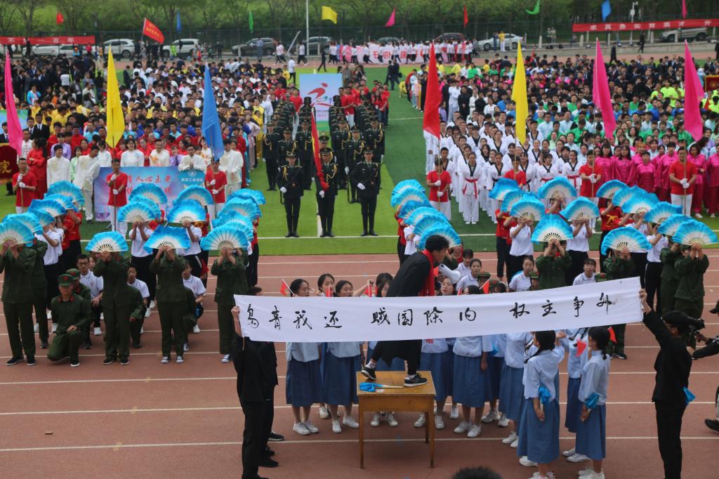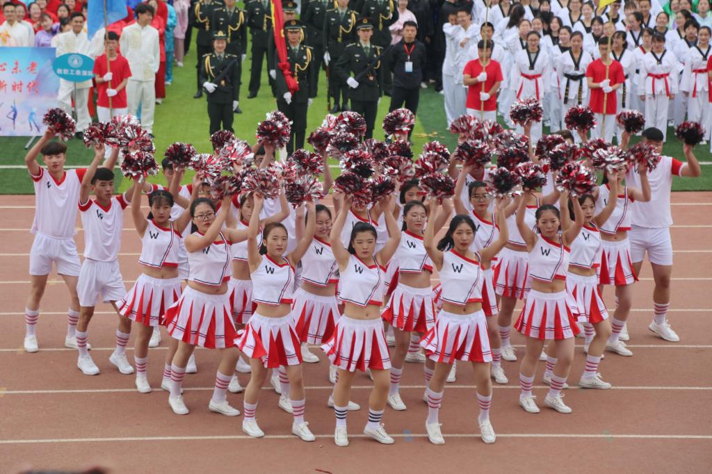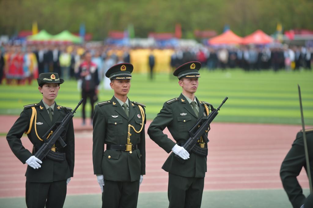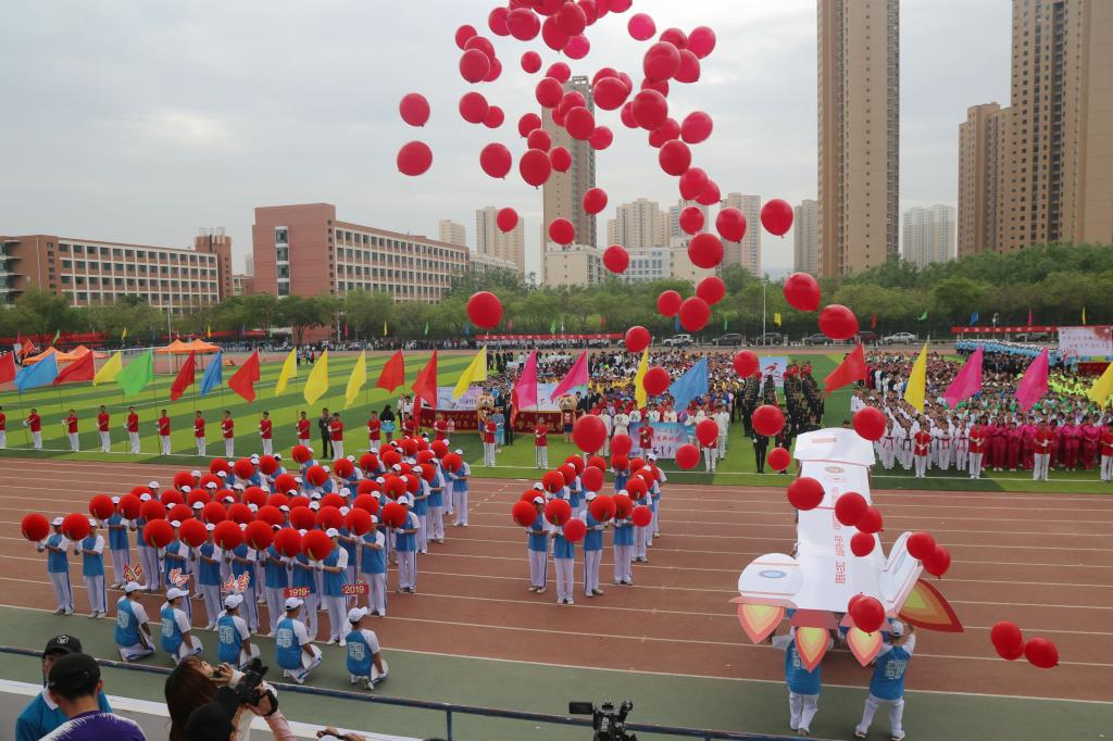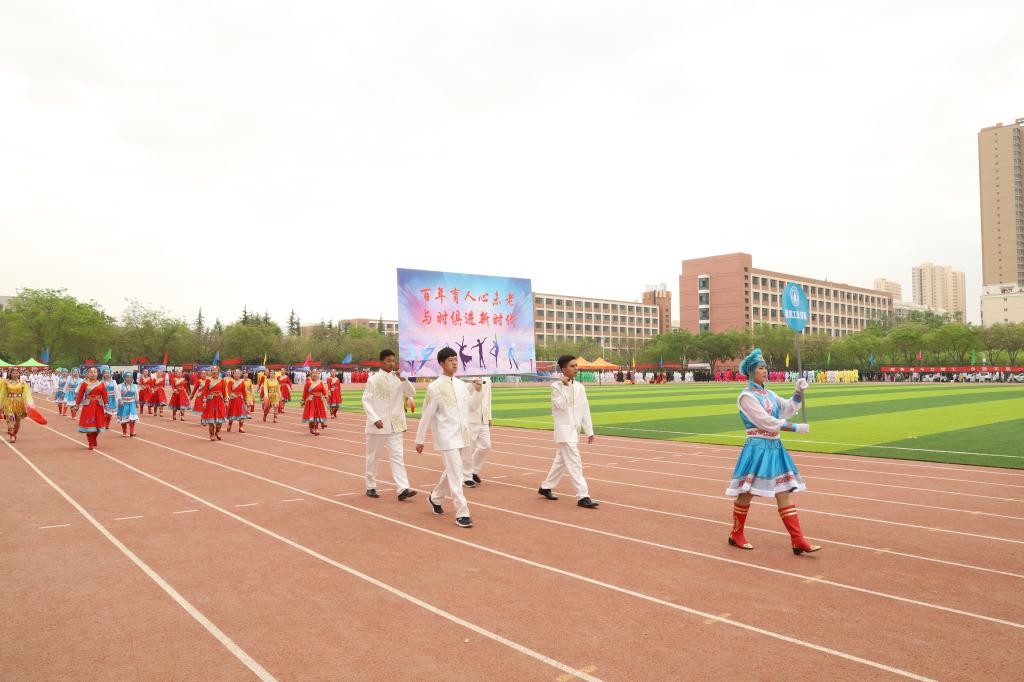 4月29日上午,蘭州理工大學2019年體育運動會在西校區田徑場隆重開幕。田徑場上彩旗招展,伴隨著激情高昂的運動員進行曲,國防生方陣護衛著莊嚴的國旗入場,運動會會徽、彩旗方隊,裁判員方隊,表演方隊,各學院學生方隊、教職工方隊,邁著整齊的步伐依次入場。各方隊各具特色的服裝、隊列、道具展現著各自的文化風貌和學科特色。