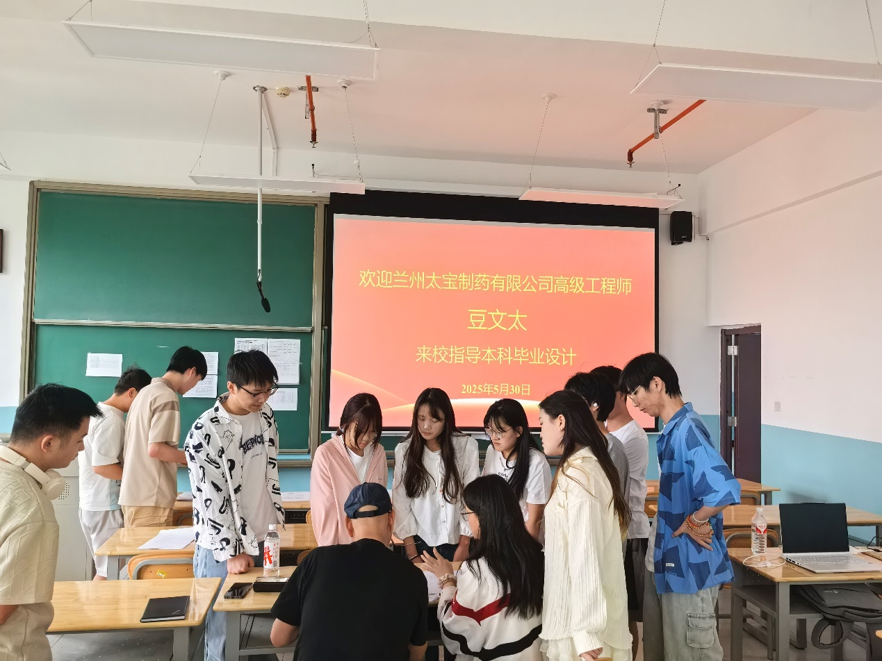 為提升畢業設計成果的規范性與實踐性,助力學生高質量完成畢業設計終稿并做好答辯準備,5月30日,生命科學與工程學院制藥工程專業特邀蘭州太寶制藥有限公司高級工程師豆文太來校,為2021級本科生畢業設計進行收尾階段專項指導。本次交流會由制藥工程專業副主任王存金博士主持,2021級全體畢業生共同參與。