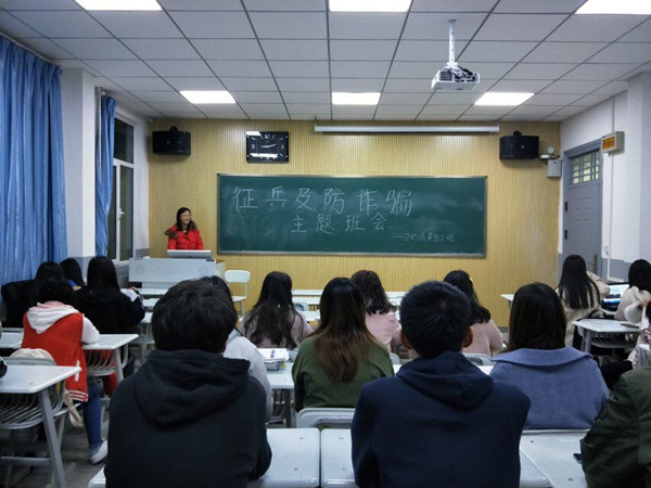 各班班主任向同學們介紹征兵相關政策、優待政策和應征報名流程等,并列舉了我院學生參軍的例子,強化了同學們參軍保衛國家的意識,動員所有符合條件要求的同學們積極踴躍地響應國家號召。在外實習的畢業生,各班通過電話等形式逐人征求征兵意愿,把“大學生征兵入伍”有關政策傳達到了每一位學生中。
