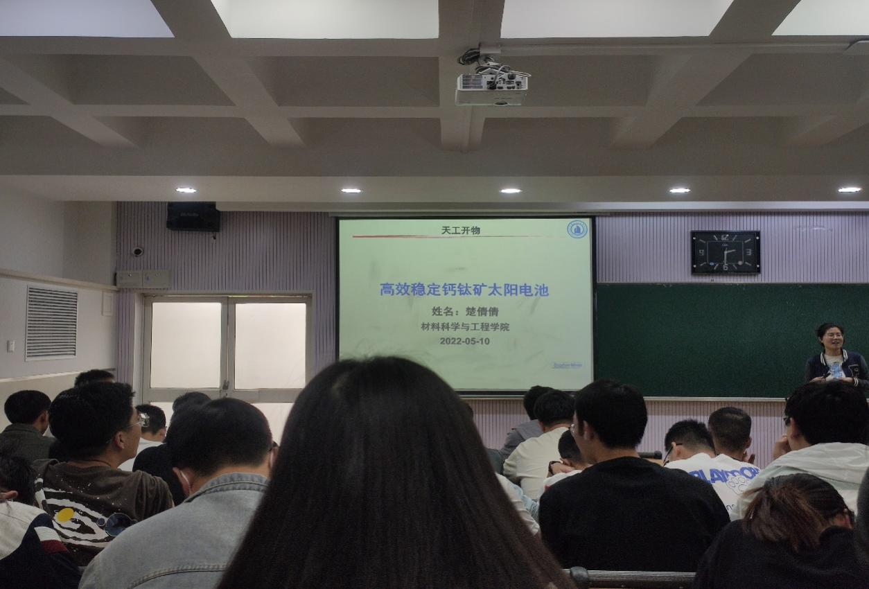 05月10日下午,材料科學與工程學院在蘭工坪校區尚學樓203教室舉辦了2022年春季學期第九期“天工開物”學術講座,講座邀請楚倩倩老師和楊鵬輝老師為2021級碩士研究生做了學術報告。材料學院2021級碩士研究生參加了此次學術匯報,認真聽取了兩位老師的學術報告。