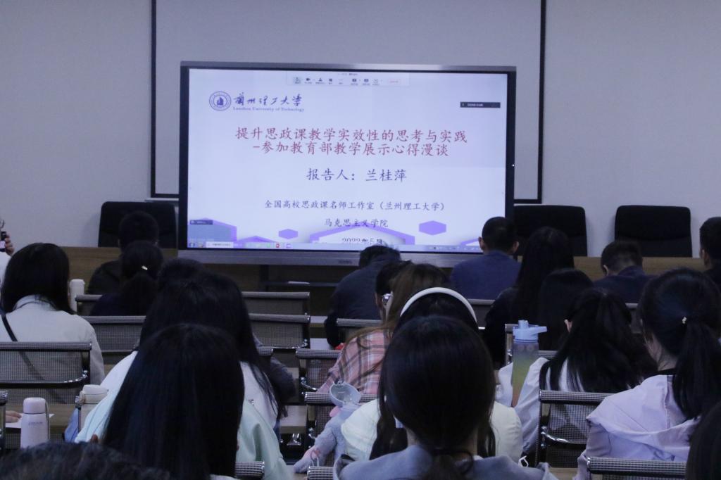 蘭桂萍老師以“提升思政課教學實效性的思考與實踐”為主題,以提升思政課思想性、理論性和親和力針對性為主線,從選題解題、理論與實例和技術與藝術三個方面系統講述了她思政課教學豐富而寶貴的經驗及參加全國高校思政課教學展示等活動的心得體會,她還選取了思想道德與法治和毛澤東思想和中國特色社會主義理論體系概論兩門課程中的內容進行了現場教學示范。報告會既有理論高度,又有實踐深度,內容豐富,精彩生動,引人思考,感染力極強,為提升我校思政課教師教學能力和教學實效性提供了指引。(撰稿:祁琪格 審核:孫念韶)