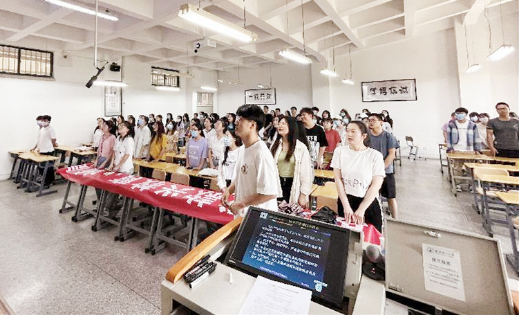 會(huì)上,參會(huì)師生觀看了習(xí)近平總書記在慶祝中國共產(chǎn)主義青年團(tuán)成立100周年大會(huì)上的講話。