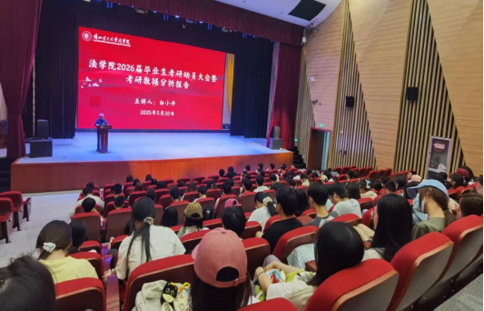 動員會上,法學院白小平教授緊密圍繞當前就業、考研形勢和學院近八年畢業生考研數據,從報考趨勢、上線率、錄取院校層次、本校研究生錄取情況等多維度展開深入細致的分析。并建議2026屆本科生結合自身實力,理性選擇考研目標院校和專業,扎實系統學習專業科目,加強考研真題練習,注重心態調整,實現勞逸結合。為學生提供了清晰的備考目標與策略建議。