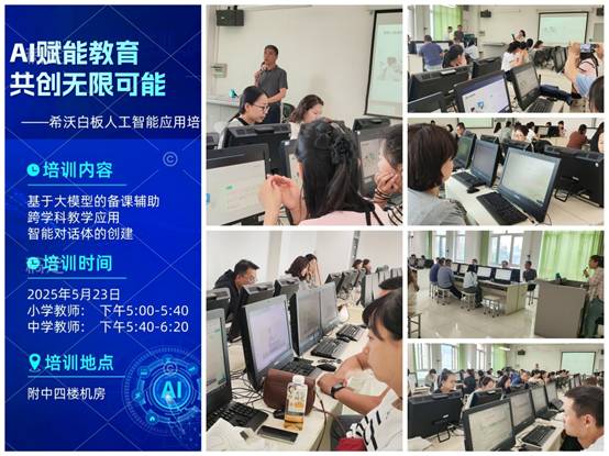 為推動教育與人工智能深度融合,提升教師信息化教學能力,蘭州理工大學附屬中學于5月23日在四樓機房開展 “希沃白板人工智能應用培訓”。本次培訓以“AI賦能教育 共創無限可能”為主題,聚焦深度挖掘希沃白板軟件人工智能方面的強大功能,旨在幫助教師們解鎖希沃白板在教學中的更多可能性,助力教育創新發展,吸引了全校教師踴躍參與,集團校教師代表也應邀前來參與培訓。