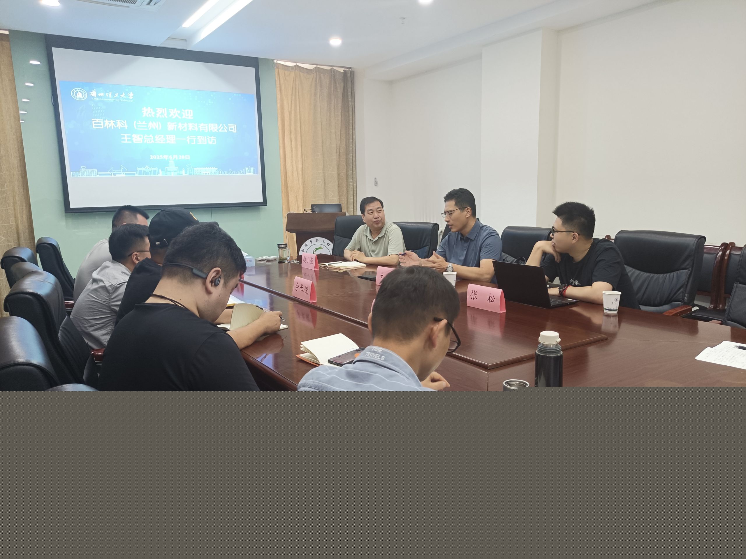 6月20日上午,百林科(蘭州)新材料有限公司總經理王智、研發(fā)總監(jiān)張松一行到訪生命科學與工程學院。學院青年教師代表田輝、余長俊、成斌、王克榮和石任杰參加座談,學院副院長趙小亮主持座談會。