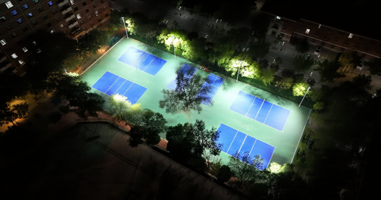 改造后運(yùn)動(dòng)場(chǎng)地夜間燈光效果