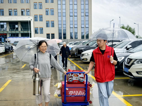 行李搬運,接過沉甸甸的“行囊”。沉重的行李是新生報到途中的一大難題,尤其在雨天更顯不便。為此,各服務點專門配備了板車、小推車,并組織了一支“骨干搬運隊”。志愿者們不辭辛勞,主動幫助新生將一件件行李從校門口搬運至各公寓樓棟樓下,傳遞了互助友愛的校園精神。
