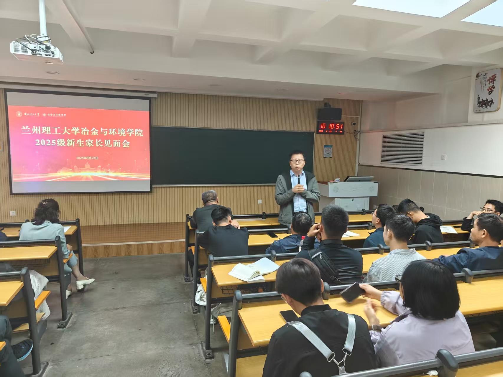為加強家校協同育人,增進新生家長對學校、學院學習生活的了解和認識,冶金與環境學院于8月28日下午召開2025級本科新生家長見面會,學院領導班子、各系主任、輔導員、新生班主任及150余名新生家長參會。會議由學院黨委副書記劉文博主持。
