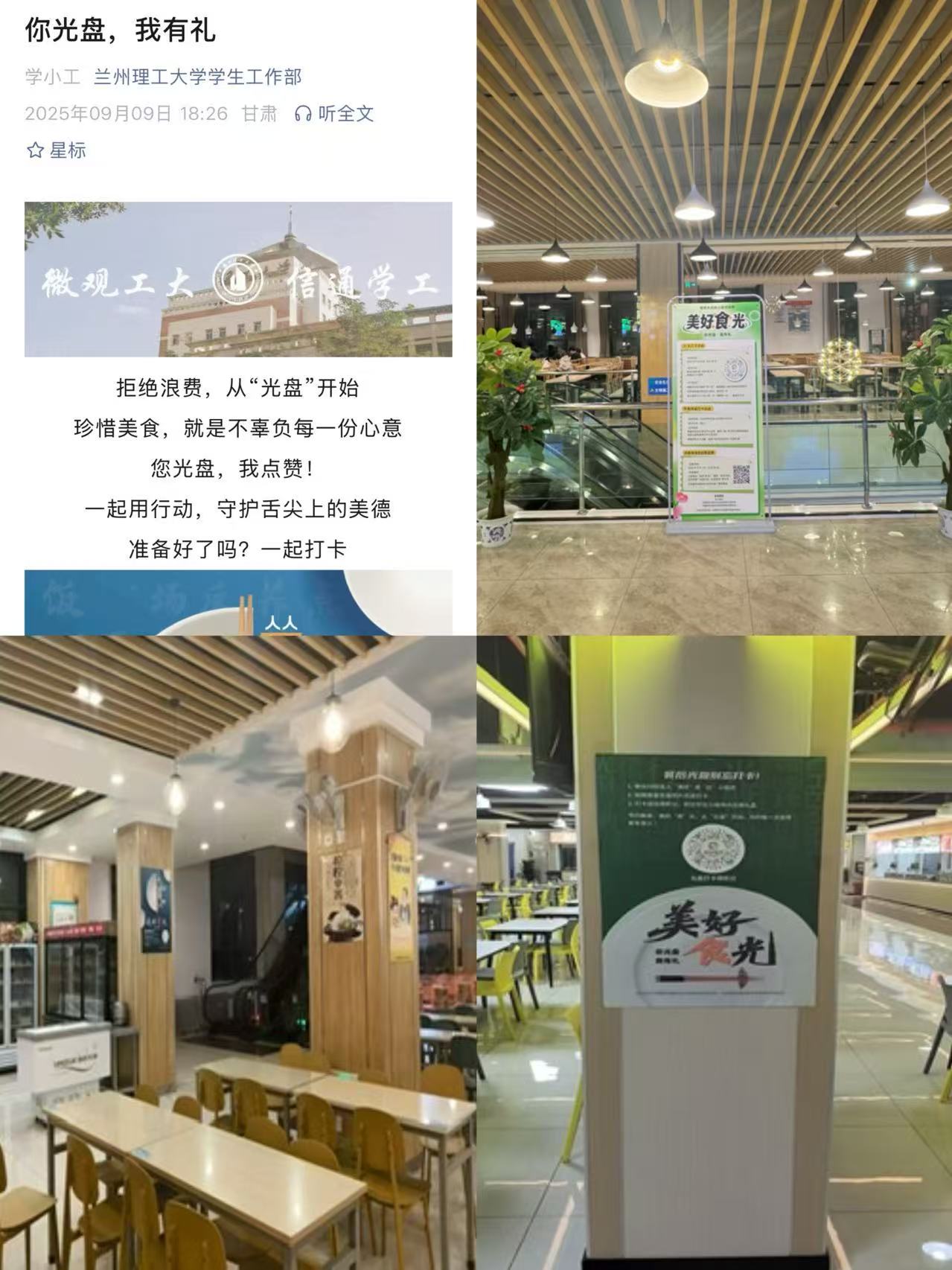 后勤保障部統一印制活動宣傳海報和展架,布置在各餐廳醒目位置,同時鼓勵各餐廳提供自助餐、大小份或半份餐品,滿足不同人群需要,營造濃厚的愛糧惜糧氛圍;黨委學生工作部通過公眾號推送活動方案,引導學生積極參與活動,把節約理念切實融入學生的日常就餐行為中,讓節約糧食成為校園用餐的新風尚。