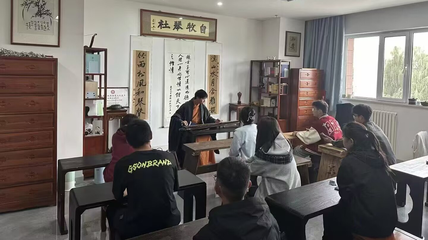 傳統文化體驗室內琴音悠揚,國學會以非遺之聲“古琴雅集”致敬祖國華誕,《桃李園序》《莊周夢蝶》《陽關三疊》等曲目讓紅柳學子在古樸琴韻中體悟傳統文化內涵,更激發“以文化自信助力祖國發展”的責任感。