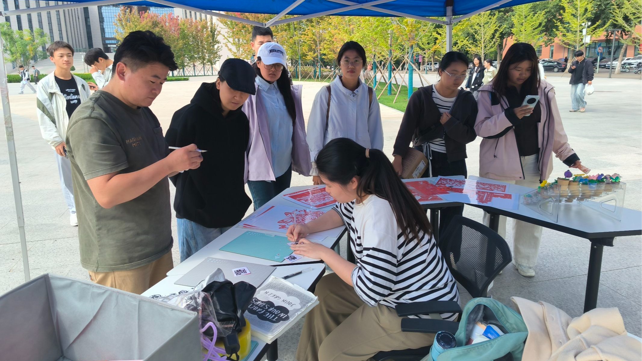 活動通過書畫交流、手工剪紙教學、古琴雅集、互動展示、書法書簽定制等特色活動,為校園繪就一幅“文化潤心、愛國鑄魂”的雙節畫卷。