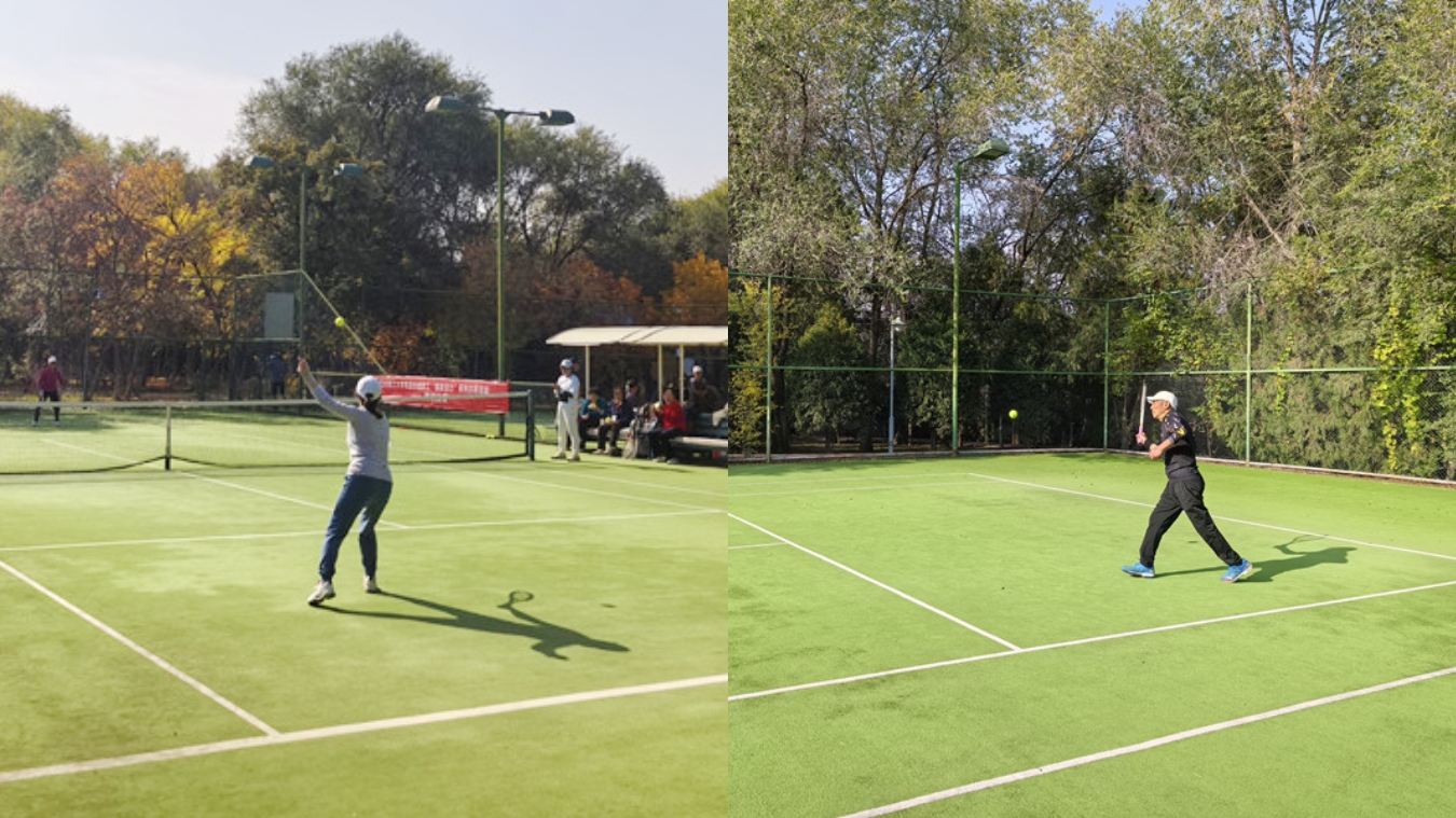 比賽中,老同志們精神飽滿、全情投入,時而快速回球,時而靈活截擊,展現對體育運動的熱愛與風貌。90歲的展振岐老師表示:“在球場上跑起來,感覺又年輕了!”