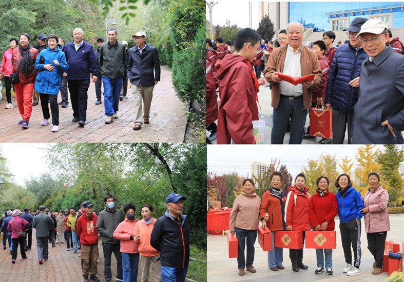 當天下午,離退休教職工服務中心組織500余位老同志,開展了溫馨而寓意深遠的登高望遠活動。蘭州理工大學附屬中學初一年級的116名同學,與離退休老教師結對攀登甲子山,老幼相攜、互贈禮物的畫面,讓尊老敬老的中華優秀傳統文化代代相傳。