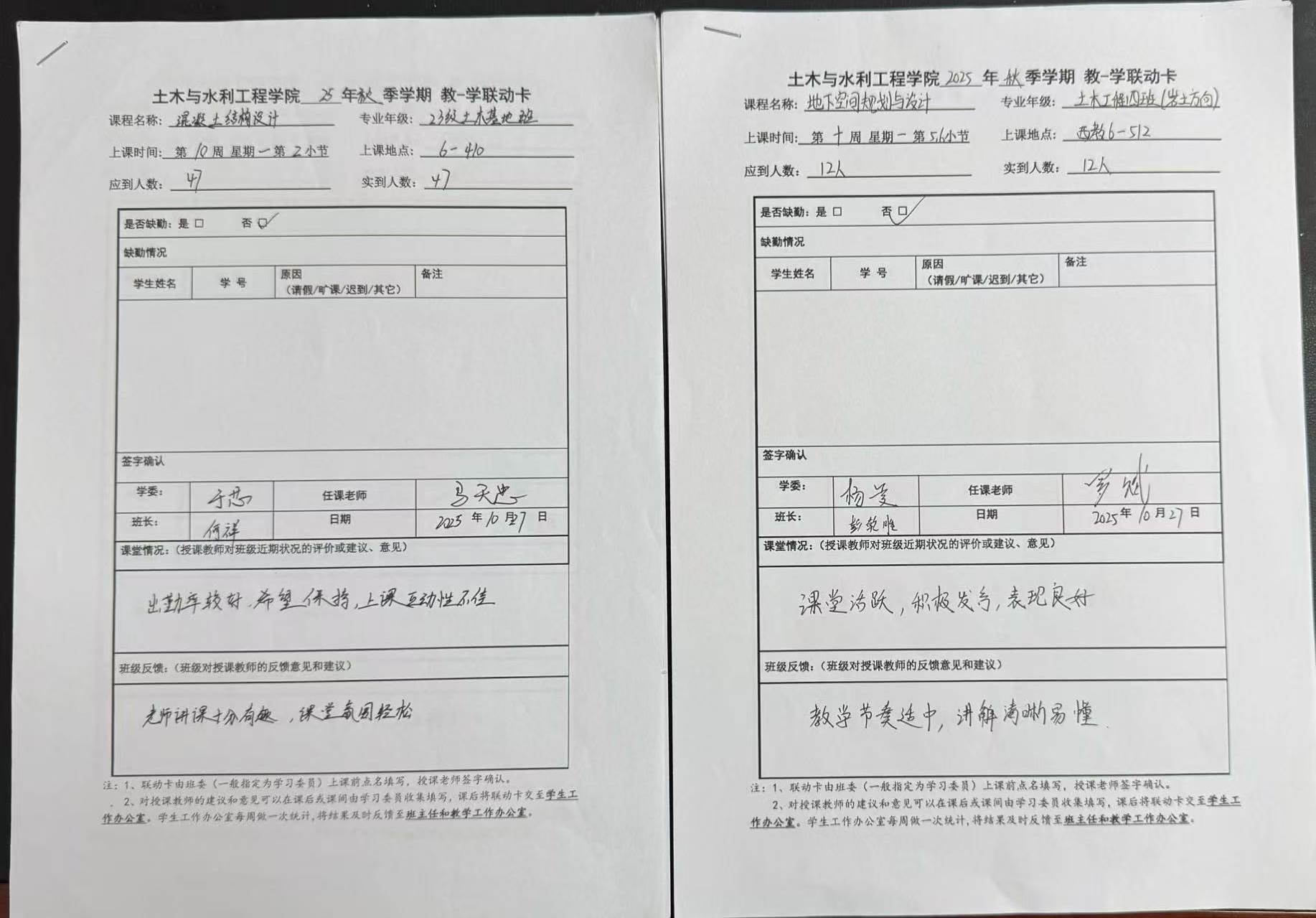 土木與水利工程學(xué)院始終堅(jiān)持“點(diǎn)面結(jié)合、標(biāo)本兼治”的學(xué)風(fēng)建設(shè)思路,既聚焦學(xué)業(yè)困難群體開(kāi)展靶向幫扶,又強(qiáng)化課堂教學(xué)、日常管理等關(guān)鍵環(huán)節(jié)的全過(guò)程管理;既發(fā)揮學(xué)生干部、優(yōu)秀學(xué)子的示范帶動(dòng)作用,又凝聚全體教師的協(xié)同育人合力,逐步形成“教風(fēng)引領(lǐng)學(xué)風(fēng)、管理推動(dòng)學(xué)風(fēng)、文化涵養(yǎng)學(xué)風(fēng)”的良性生態(tài)。下一步,學(xué)院將持續(xù)優(yōu)化學(xué)風(fēng)建設(shè)機(jī)制,細(xì)化育人舉措,以更高標(biāo)準(zhǔn)、更實(shí)作風(fēng)推動(dòng)人才培養(yǎng)質(zhì)量實(shí)現(xiàn)新跨越,為培養(yǎng)更多適應(yīng)國(guó)家發(fā)展需求的高素質(zhì)土木水利專業(yè)人才奠定堅(jiān)實(shí)基礎(chǔ)。(圖/文:金雪;審核:趙煒)