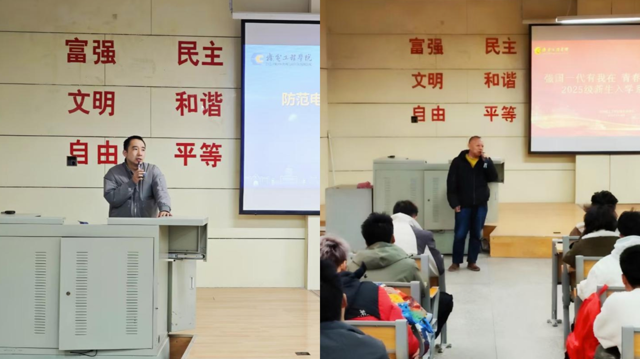 為切實提升大學生防范電信網絡詐騙與抵制毒品侵害的意識和能力,織密校園安全防護網。11月18日,機電工程學院聯合學校保衛部、甘肅省女子強制隔離戒毒所在集賢樓教室舉辦“反詐防毒雙防線,青春護航筑平安”主題教育講座。本次活動通過案例剖析、視頻警示、趣味互動等多種形式,為2025級全體新生呈現了一場內容豐富、形式生動的安全教育課。