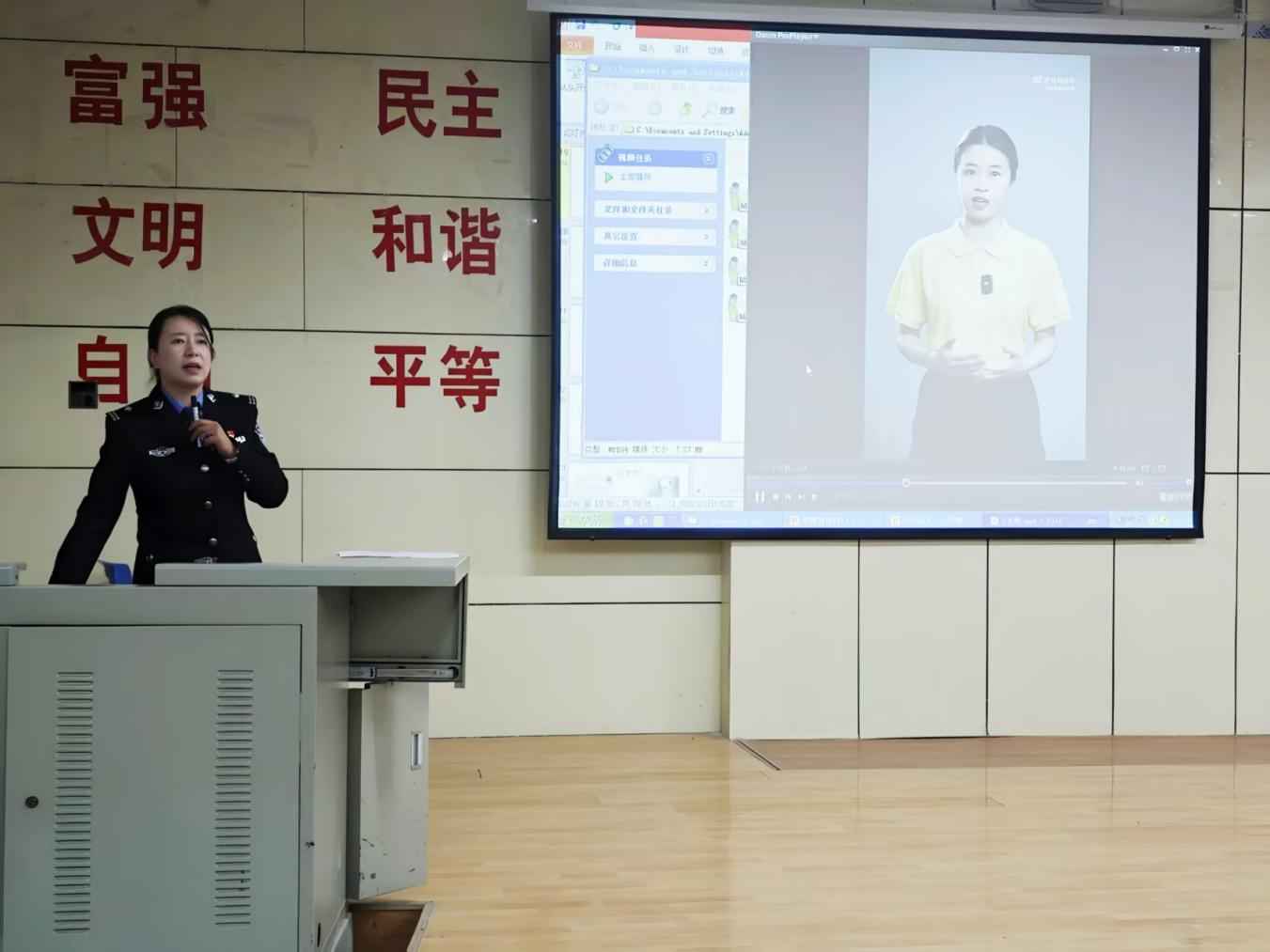 講座開場,甘肅省女子強制隔離戒毒所警官董娟以通俗易懂的語言向學生普及了禁毒知識。她重點分析了當前偽裝性極強的涉毒物品,如所謂“減肥藥”“聰明藥”等,指出其背后潛藏的毒品危害。現場播放的禁毒宣傳短片更以極具震撼的畫面展示了毒品對個人、家庭與社會造成的毀滅性影響,進一步強化了“珍愛生命、遠離毒品”的共識。