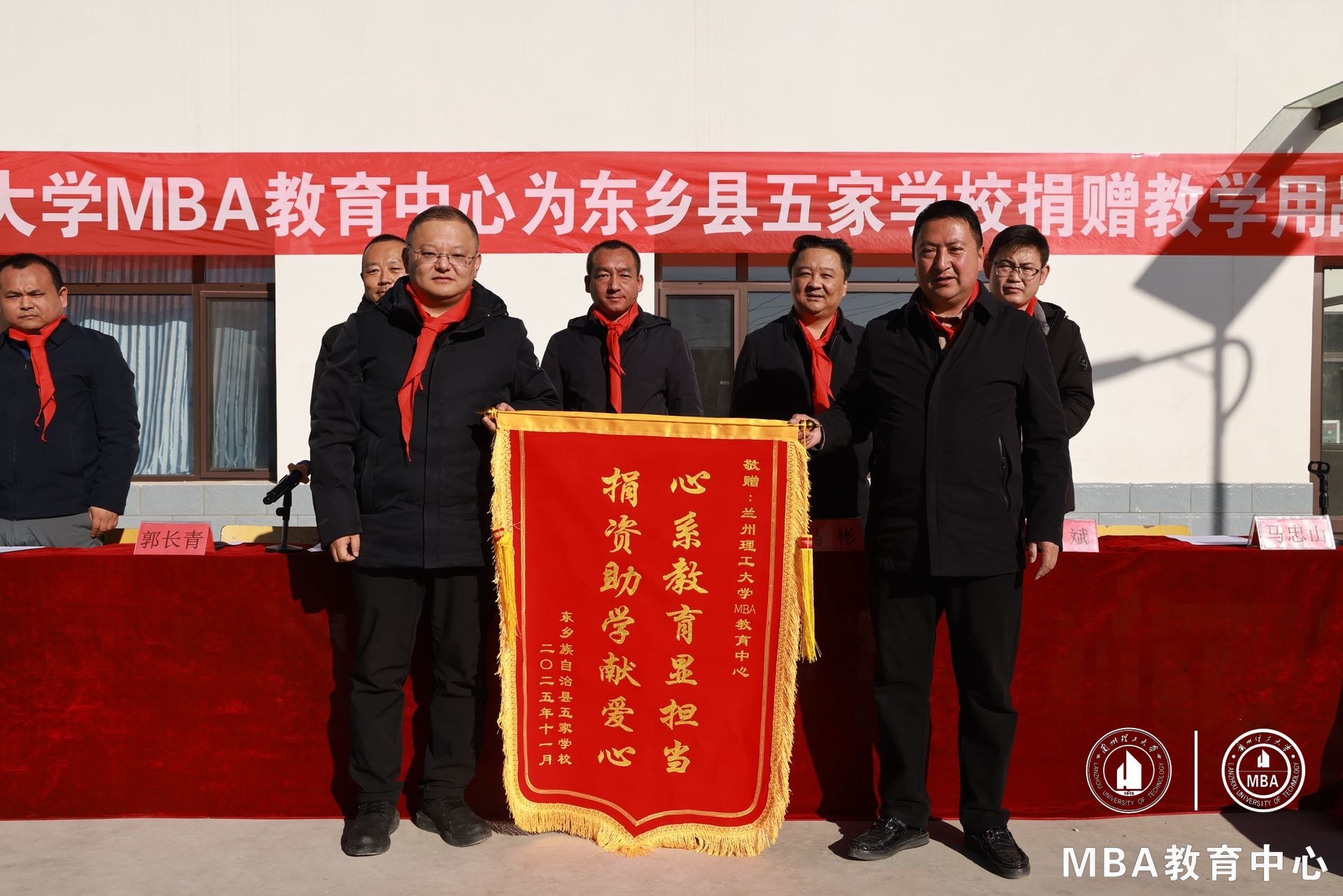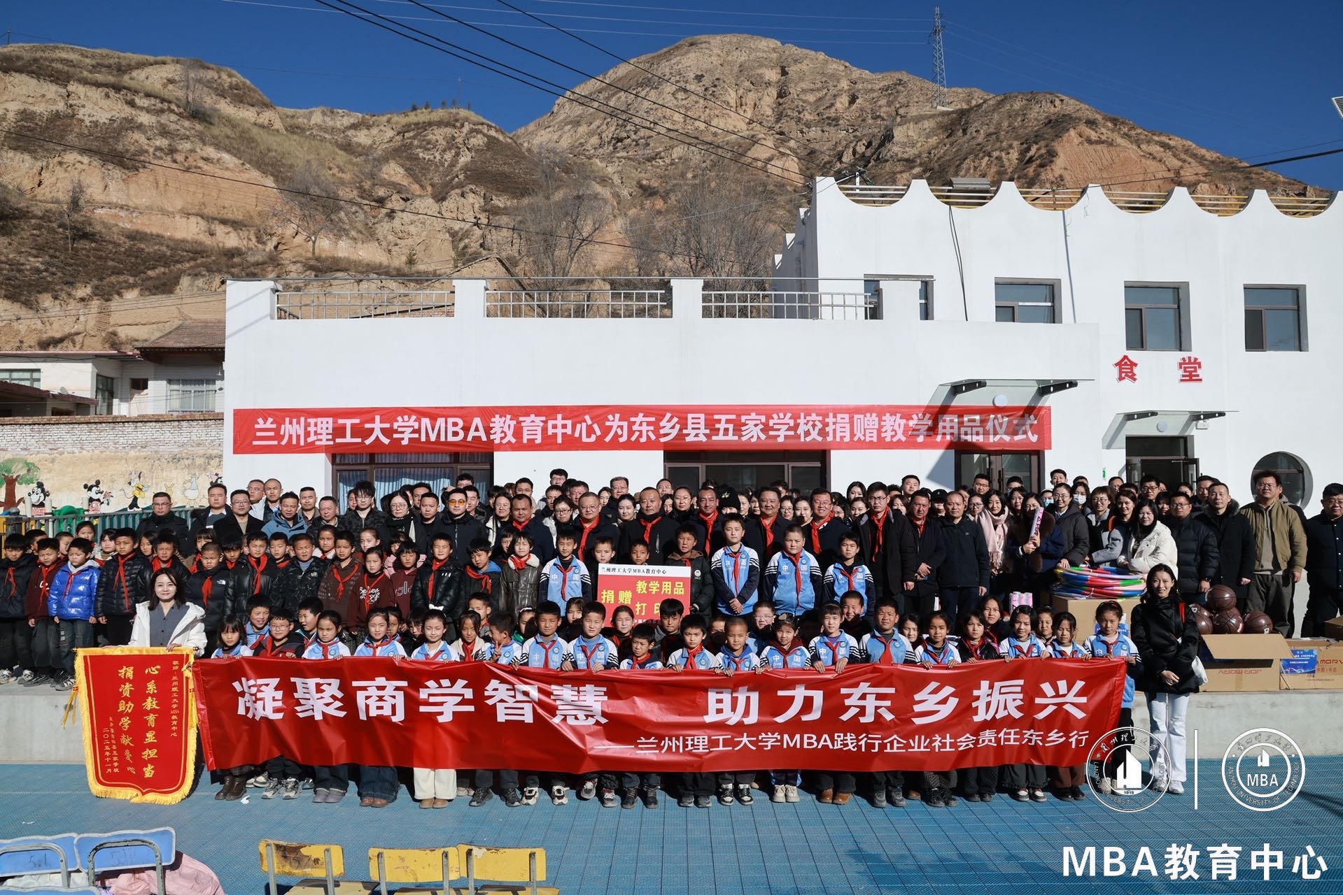 冬陽送暖,情滿校園。11月28日上午,蘭州理工大學MBA教育中心幫扶東鄉縣五家鄉五家學校捐贈儀式在五家學校操場舉行。2025屆MBA畢業生捐款購置打印機與教學和體育用品,為東鄉縣五家學校送去幫扶與溫暖。縣教育局、五家鄉相關負責人、五家學校全體師生與學校駐村工作隊、MBA教育中心師生參加。