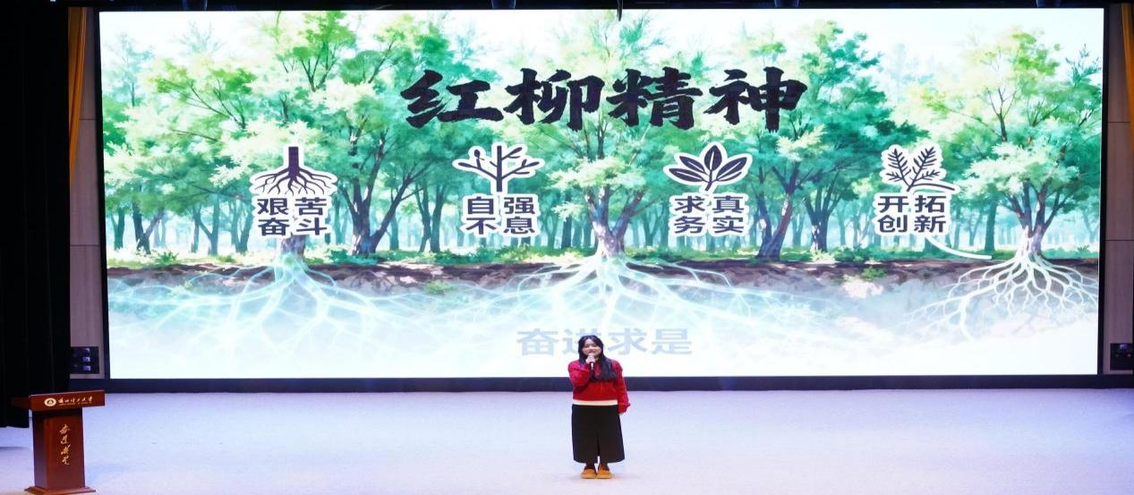 本次比賽以傳承和弘揚“艱苦奮斗、自強不息、求真務實、開拓創新”的紅柳精神為主題。決賽現場,選手們通過獨誦、對講、舞臺劇等多種形式,再現了學校106年辦學歷程中的感人故事。從能源與動力工程學院選手講述的四代師生西遷耕耘的動人篇章,到理學院選手展現的以數理之刃服務國家戰略的科研擔當;從外國語學院選手回顧的從“一間教室”到服務“一帶一路”的特色發展之路,到計算機與人工智能學院選手詮釋的扎根西北、科技報國的初心使命,每個作品都凝聚著學子們對校史的深刻理解與時代詮釋。