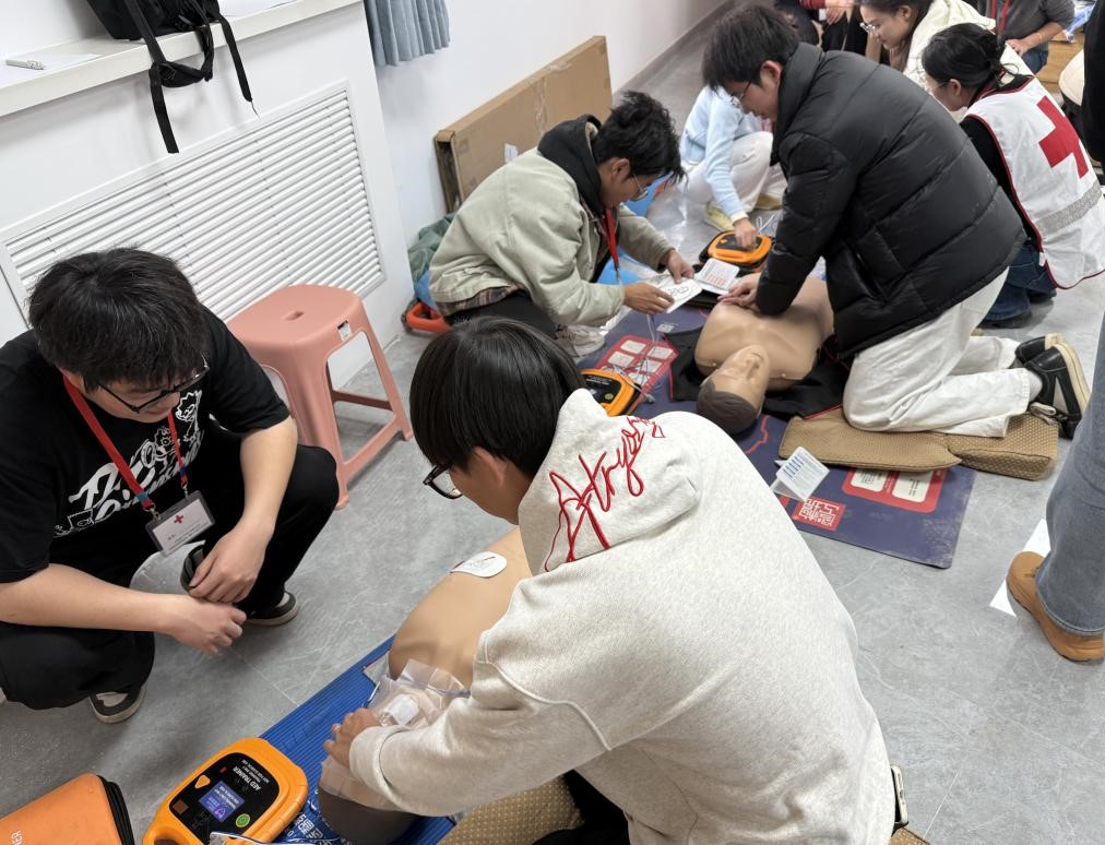 培訓(xùn)分為理論授課與實(shí)操演練兩部分。理論課于12月3日在彭家坪校區(qū)進(jìn)行,重點(diǎn)講解了心肺復(fù)蘇(CPR)理論、自動(dòng)體外除顫器(AED)使用以及創(chuàng)傷救護(hù)基礎(chǔ)理論等內(nèi)容。實(shí)操課于12月6日在彭家坪校區(qū)大學(xué)生活動(dòng)中心501室(應(yīng)急救護(hù)培訓(xùn)基地)開展,學(xué)員在老師的指導(dǎo)下,分組進(jìn)行了CPR與AED的操作實(shí)訓(xùn),以及創(chuàng)傷包扎、固定等實(shí)用技能練習(xí),確保每位學(xué)員都能動(dòng)手掌握關(guān)鍵救護(hù)技術(shù)。通過教學(xué)與實(shí)踐,有59名學(xué)員成功取證,成為校園應(yīng)急救護(hù)的新生力量。