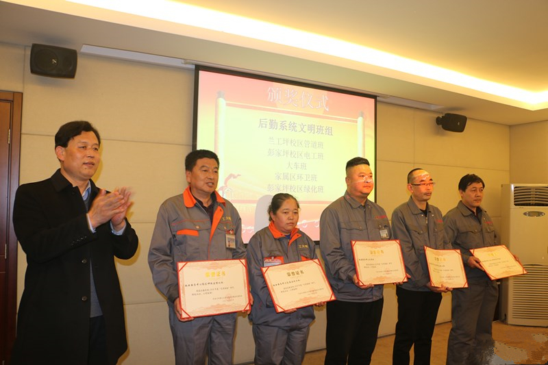 會議對后勤系統2018年度組織的相關活動比賽進行了表彰獎勵,對后勤系統9個文明班組、5名后勤風采人物、評選出的8名工會積極分子及后勤職工排球比賽、籃球比賽、棋牌大賽優勝集體頒發了榮譽證書。