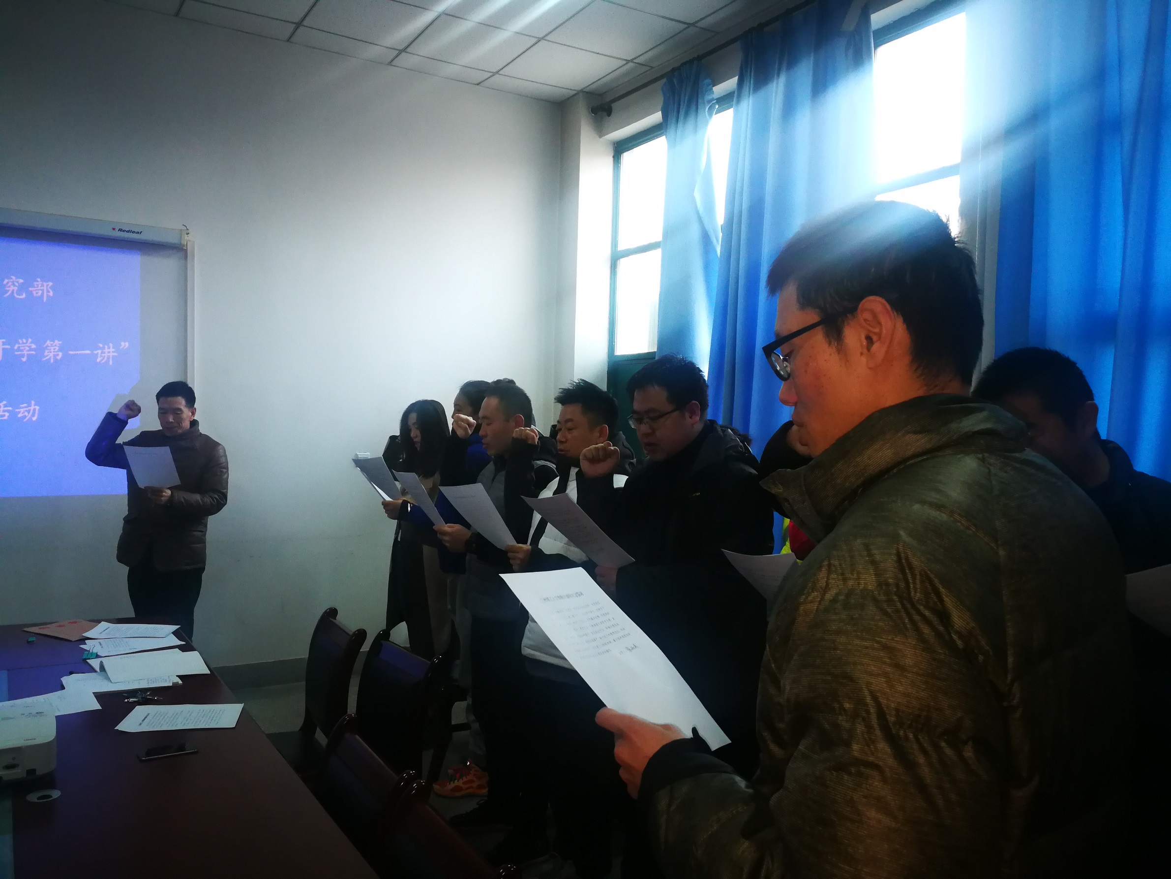 教育活動(dòng)大會(huì)由林厚秦書(shū)記主持。他介紹了學(xué)校文件精神及活動(dòng)目的和意義。陳祎晟副主任組織大家學(xué)習(xí)了《教育法》、《教師法》等法律法規(guī),并帶領(lǐng)全體教師學(xué)習(xí)了《新時(shí)代高校教師職業(yè)行為十項(xiàng)準(zhǔn)則》、《教育部關(guān)于高校教師師德失范行為處理的指導(dǎo)意見(jiàn)》等文件。集中學(xué)習(xí)后,全體教職工在李小唐主任的領(lǐng)誓下進(jìn)行了莊嚴(yán)的宣誓,并簽署了《蘭州理工大學(xué)教師師德師風(fēng)承諾書(shū)》。