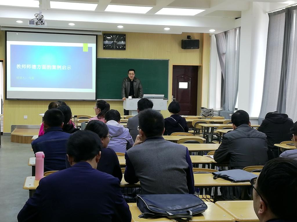 馬霖針圍繞教師師德方面進(jìn)行主題報(bào)告。他表示,教師是人類(lèi)靈魂的塑造者,是學(xué)生的領(lǐng)路人,所以教師責(zé)任重大,使命光榮。作為高校教師要嚴(yán)于修身,嚴(yán)格執(zhí)行《新時(shí)代高校教師職業(yè)行為十項(xiàng)準(zhǔn)則》,通過(guò)列舉高校教師師德方面的案例,啟示老師們要自覺(jué)筑牢思想防線,千萬(wàn)不能觸碰師德禁行行為的紅線。