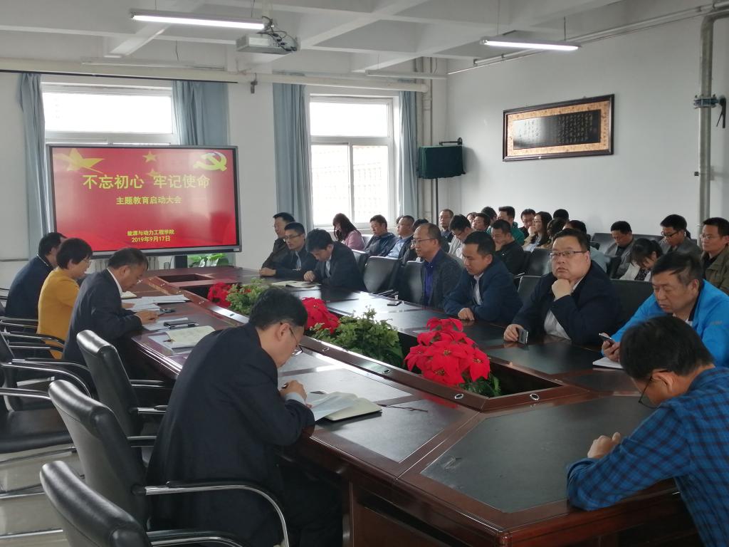 9月17日下午,能動學院在四樓會議室召開“不忘初心、牢記使命”主題教育啟動大會。認真學習貫徹習近平總書記在“不忘初心、牢記使命”主題教育工作會議上的重要講話精神,嚴格按照學校對主題教育的部署要求,對學院主題教育進行安排與部署。會議由學院黨委書記王繼紅主持。