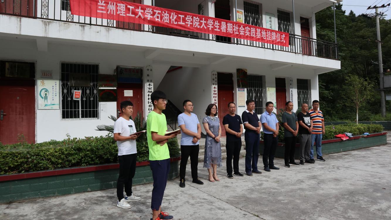 2019-07-307月24日,石化學(xué)院在隴南市文縣中廟鎮(zhèn)木家壩村舉行蘭州理工大學(xué)大學(xué)生暑期社會(huì)實(shí)踐基地掛牌儀式。石化學(xué)院黨委書記滕懷榮、黨委副書記李榮華、本科生輔導(dǎo)員李玉鵬、中廟鎮(zhèn)黨委副書記張濤、駐村第一書記左殿祥、木家壩村支部書記高春林、駐村工作組成員以及由蘭州理工大學(xué)環(huán)保協(xié)會(huì)組成的暑期社會(huì)實(shí)踐隊(duì)和當(dāng)?shù)氐闹Ы虒W(xué)生參加掛牌儀式。儀式由輔導(dǎo)員樊晨浩主持。