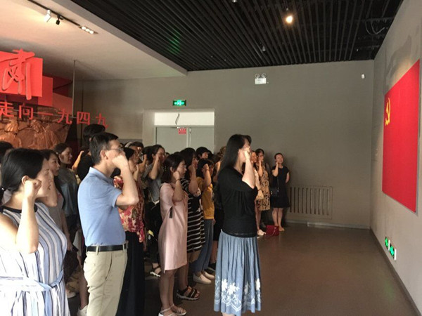 甘肅省博物館“紅色甘肅——走向1949”展覽,通過大量革命歷史文物和珍貴史料圖片,全面展示了新民主主義革命時期甘肅人民在中國共產(chǎn)黨領(lǐng)導(dǎo)下為爭取民族獨立、解放與富強(qiáng)所走過的艱辛道路,再現(xiàn)了甘肅革命鮮活生動的歷史畫卷和波瀾壯闊的崢嶸歲月。在學(xué)院黨委副書記焦娜的帶領(lǐng)下,師生黨員面對黨旗,重溫入黨誓詞。