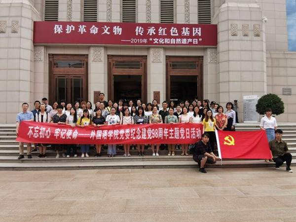 為慶祝中國共產(chǎn)黨建黨98周年,深入學(xué)習(xí)貫徹習(xí)近平新時代中國特色社會主義思想,充分發(fā)揮學(xué)院師生黨支部戰(zhàn)斗堡壘作用,外國語學(xué)院黨委于7月5日下午開展“不忘初心、牢記使命”主題教育。師生們參觀了甘肅省博物館“紅色甘肅——走向1949”展覽,重溫入黨誓詞,并觀看電影《周恩來回延安》。學(xué)院黨委委員、教師及學(xué)生黨支部黨員代表參加。