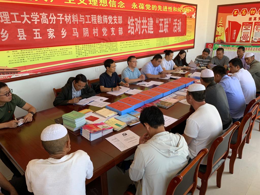 7月5日,學(xué)校黨委常委、副校長王全進(jìn)、材料科學(xué)與工程學(xué)院黨委書記李元東和高分子材料與工程教師黨支部同志一行6人來到東鄉(xiāng)縣五家鄉(xiāng)馬陰村開展基層黨組織結(jié)對共建五聯(lián)活動。五家鄉(xiāng)鄉(xiāng)黨委副書記、鄉(xiāng)長馬維忠,鄉(xiāng)黨委副書記、工作組組長馬福海,當(dāng)?shù)攸h員代表和學(xué)校3位駐村干部參加活動。