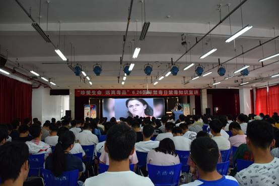 在主題講座現場,嚴蓉警官通過一個個生動的案例,深入淺出地為同學們詳細講解毒品的含義、毒品的危害、青少年應該如何預防和抵制毒品等知識,提醒廣大學生提高自我防范意識和能力,自覺抵御毒品。倡議同學們用自己所學的科學文化知識讓周圍的人們更加深刻地了解毒品的危害,培養自身高尚的情操和正確的人生觀、價值觀,進一步加強對毒品防范意識和提高我們自覺抵制毒品的能力,養成良好的生活習慣,建立良好的社會交際方式,遠離人員復雜的娛樂場所,堅決抵制不良誘惑,學會管理自我情緒等。