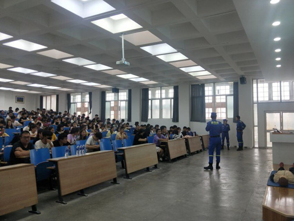 6月18日下午,甘肅藍天救援隊在校本部1南502教室召開安全知識宣傳講座,外國語學院2018級全體學生參會。