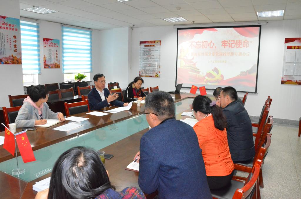 10月31日上午,土木學院舉行“不忘初心、牢記使命”主題教育對照黨章黨規(guī)找差距專題會議,學校黨委常委、副校長陳志華,生命科學與工程學院黨委副書記武軍莉,學院領導班子成員和組織員參加會議。