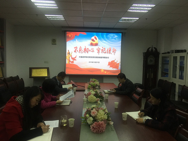 10月31日上午,外國語學院黨委在蘭工坪校區綜合實驗樓6樓學院會議室召開“對照黨章黨規找差距”專題會議,圍繞“不忘初心、牢記使命”主題教育總要求,對照黨章黨規,聚焦“18個是否”,堅持“三個擺進去”,全面深入檢視問題,推動主題教育往心里走、往深里走、往實里走。院領導班子全體成員參加了會議,學校主題教育第六指導組成員張海霞到會指導。會議由學院黨委書記周琦主持。
