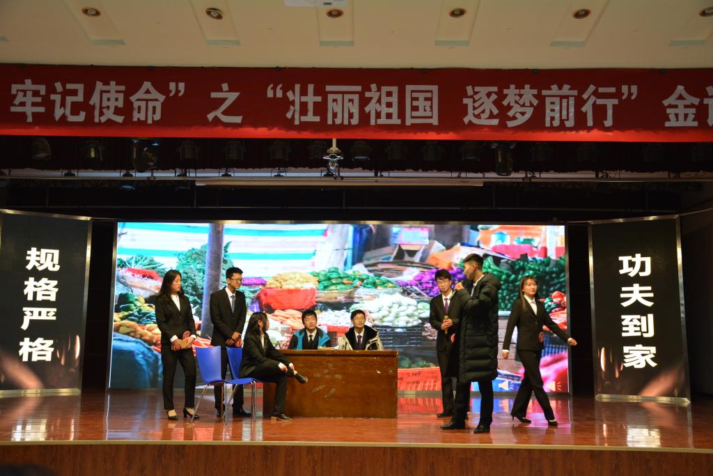 本場比賽分為模擬主持、才藝展示和妙語連珠三個環(huán)節(jié)。十位參賽選手生動表演的小品《社會人》為全場的觀眾演繹了一場視覺和聽覺上的盛宴。模擬主持環(huán)節(jié),十位選手兩兩分組互為搭檔,針對迎新晚會、畢業(yè)典禮、運(yùn)動會開幕式、深夜電臺以及婚慶活動等五個內(nèi)容進(jìn)行模擬主持,極大的考驗了選手們的基礎(chǔ)素質(zhì)和情景代入的能力。才藝展示環(huán)節(jié),選手們盡顯踔絕之能。“臺上一分鐘,臺下十年功。”那聲情并茂,婀娜多姿的背后皆是不為人知的汗水和付出。妙語連珠環(huán)節(jié),選手們通過隨機(jī)抽取的成語現(xiàn)場發(fā)揮,將成語變?yōu)閮?yōu)美的語段。最后,選手們齊唱《我和我的祖國》,共抒愛國情懷,一同祝福祖國70華誕。經(jīng)過激烈的角逐,秦嶺摘得本屆金話筒主持人大賽的桂冠,李睿初和王明榮獲二等獎,陳凡、程子枷,黃昊獲得三等獎,陳軒、李甲軍、鐘欣雨,陳國麗獲得優(yōu)秀獎。李睿初獲得最佳人氣獎。
