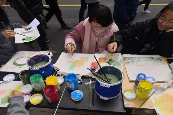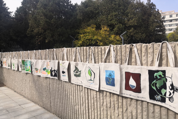 活動吸引了眾多同學參與?,F場,心靈手巧的同學們細心創作,在布袋上展現了自己的“環保理念”。天馬行空的想象和環保公益的碰撞產生了意想不到的效果,或傳統,或創新,亦或是將二者結合。