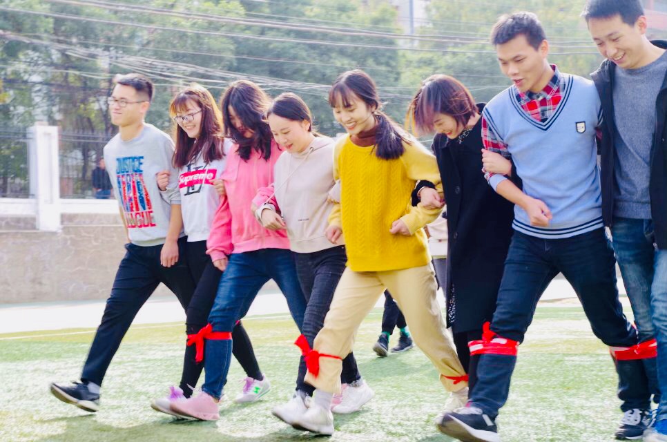 活動共設置八人九足、跳大繩、踢毽子、足式保齡、飛奪瀘定橋、端乒乓球接力趣味運動6項,男女混合4×100米接力田徑比賽。趣味運動比賽過程中,導師都根據自己的體能實際參與到活動中來,有的為同學當好拉拉隊員,有的為活動掄大繩,尤其是100米接力,我們各位同學,不僅積極組隊,而且身體力行當好主力。