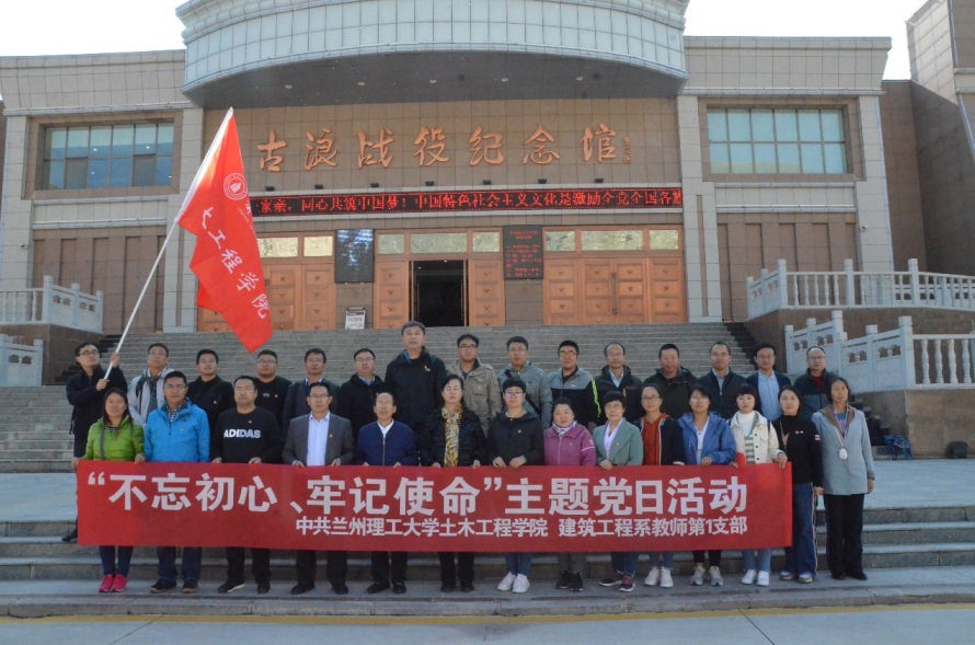 2019年10月13日,土木工程學(xué)院建筑工程系教工第1支部全體黨員、建筑工程系部分教師、學(xué)院機(jī)關(guān)黨支部全體成員一行30余人于赴“古浪戰(zhàn)役紀(jì)念館”進(jìn)行參觀學(xué)習(xí),重溫革命歷史,開(kāi)展了“回溯革命征程,追尋紅色足跡”的黨日活動(dòng)。