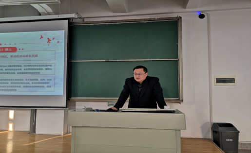 2019年11月28日下午,蘭州理工大學理學院在蘭州理工大學彭家坪校區集賢樓205教室,開展學習貫徹黨的十九屆四中全會的專題黨課,特邀學校黨委常委、副校長王全進擔任主講,理學院黨委書記李建東主持黨課,理學院黨委委員、教師黨支部書記以及學生黨員、入黨積極分子等參加黨課。