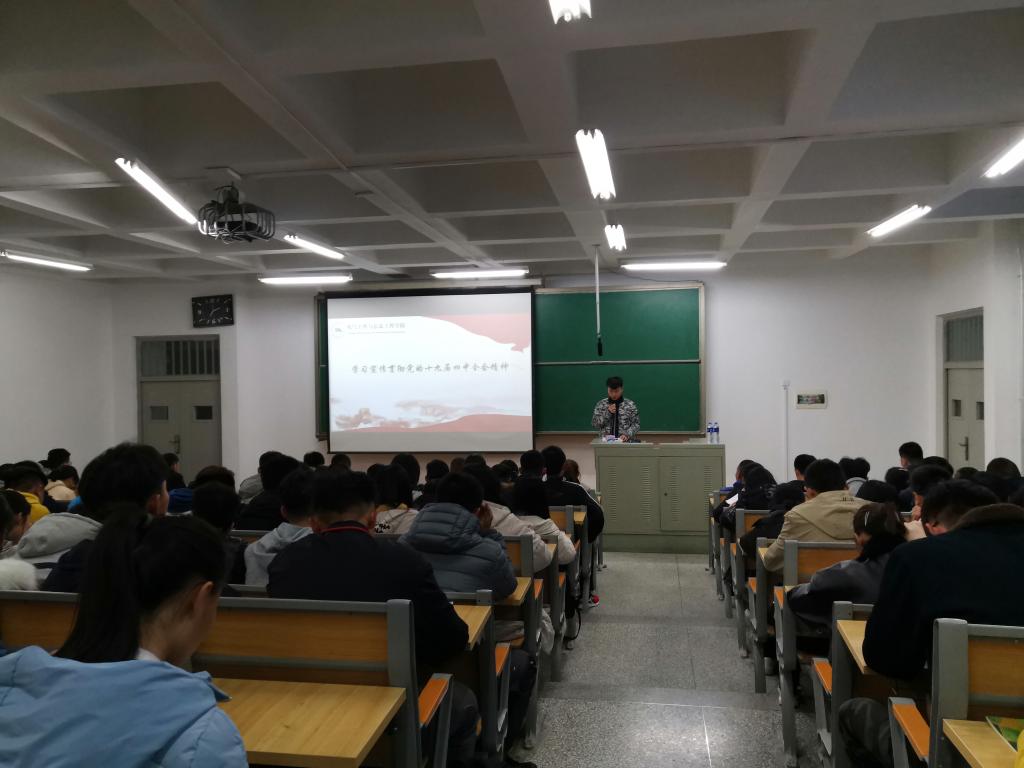 2019年11月22日,電氣工程與信息工程學院在彭家坪校區集賢樓組織學院2019年秋季“青馬工程”培訓班全體學員學習十九屆四中全會精神。學院“青馬工程”培訓班全體學員及團委、學生會全體干部參加了本次學習,會議由學院團委組織部負責人主持。