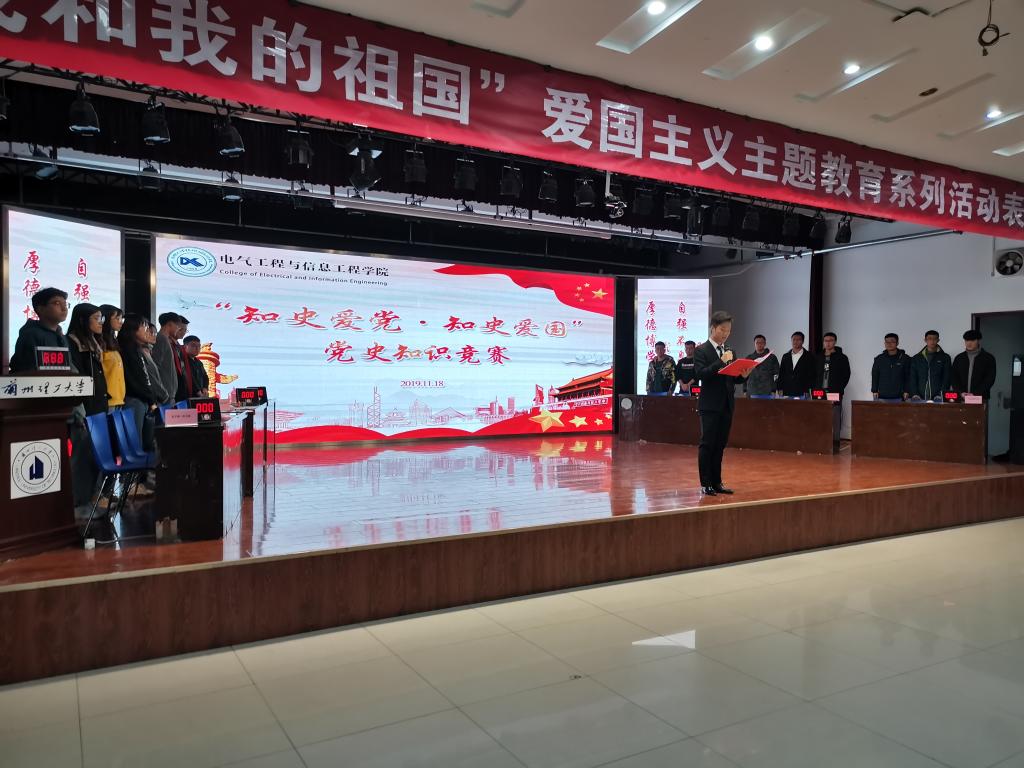 2019年11月18日,由電信學(xué)院黨委主辦、學(xué)院團(tuán)委協(xié)辦的“我和我的祖國”愛國主義教育主題系列活動表彰儀式暨“黨史知識競賽”在彭家坪校區(qū)大學(xué)生活動中心三樓舉行,學(xué)院黨委書記楊新華、黨委副書記朱毓杰、黨委組織員陳沖、全體輔導(dǎo)員及學(xué)生黨支部代表、學(xué)生代表四百余人參加了本次活動。
